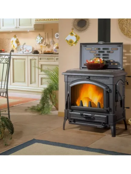 Le four en acier, doté d’une porte en fonte avec vitre et d’un thermomètre jusqu’à 500 °C, offre un volume utile de 26,5 L (390 mm L x 200 mm H x 340 mm P). Ses supports réglables permettent d’adapter la cuisson, et la plaque inox incluse facilite la préparation de vos plats. Vous pouvez ainsi mijoter, gratiner ou cuire au four tout en chauffant la maison.