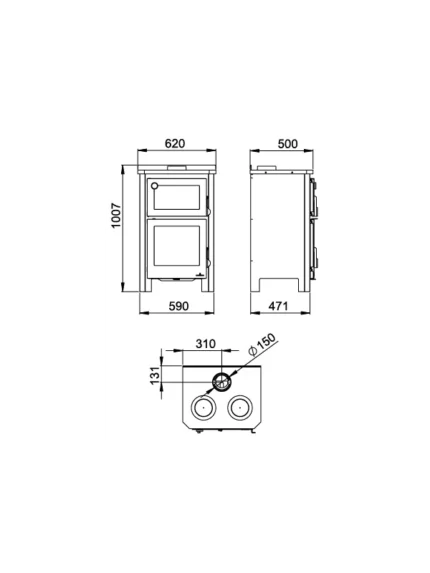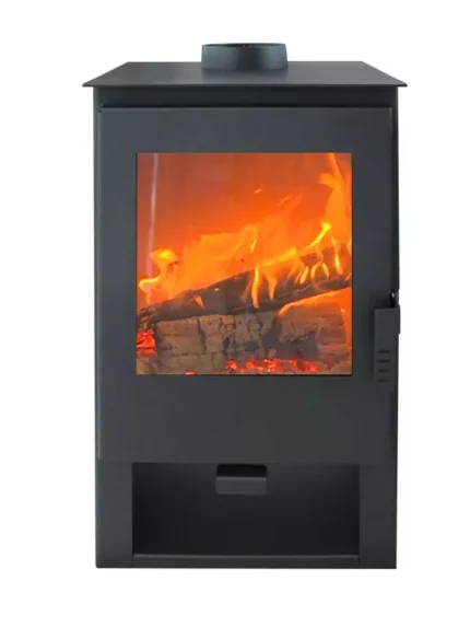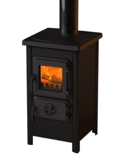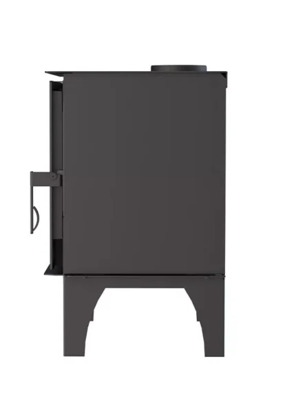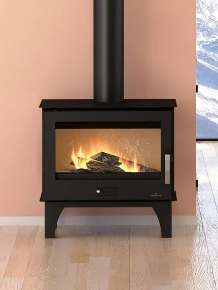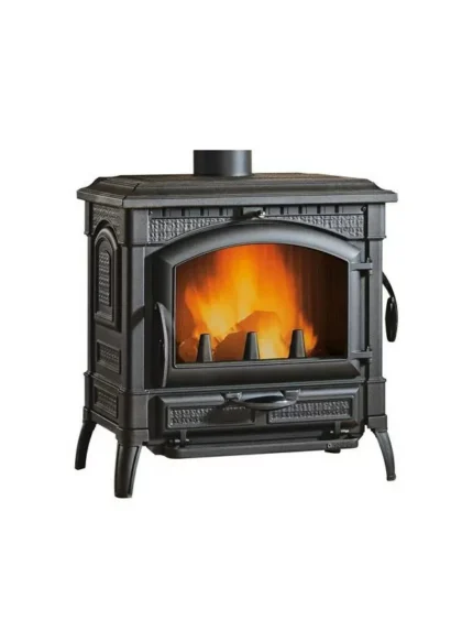 Fabriqué en fonte et acier, avec un foyer garni de pierres réfractaires et une grille en fonte, il assure une diffusion homogène et durable de la chaleur. La sortie de fumées de 150 mm, placée sur le dessus, simplifie l’installation sur un conduit existant.