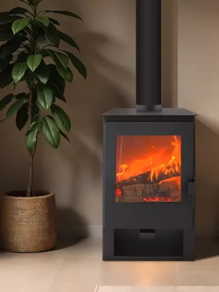 Avec une puissance nominale de 14 kW (plage de 5,5 à 14 kW) et un rendement de 82 %, le Pramoda offre un chauffage performant et économique. Sa consommation maîtrisée de 3,9 kg/h et sa capacité à accueillir des bûches jusqu’à 50 cm assurent une autonomie prolongée, limitant les rechargements.